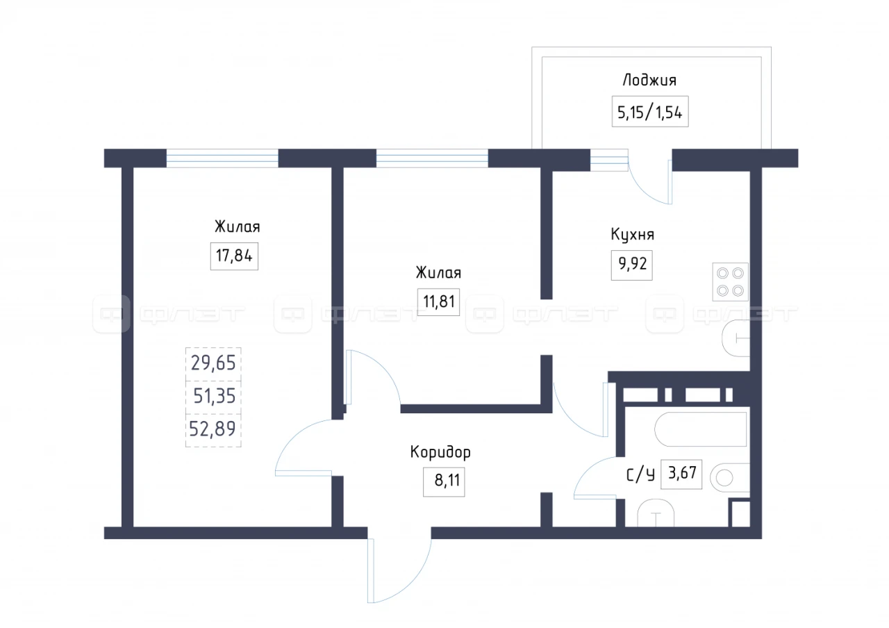 - 52.89/29.65/9.92 м²