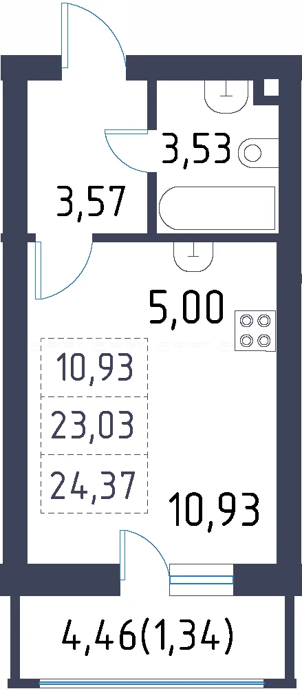 - 24.37/10.93/5 м²
