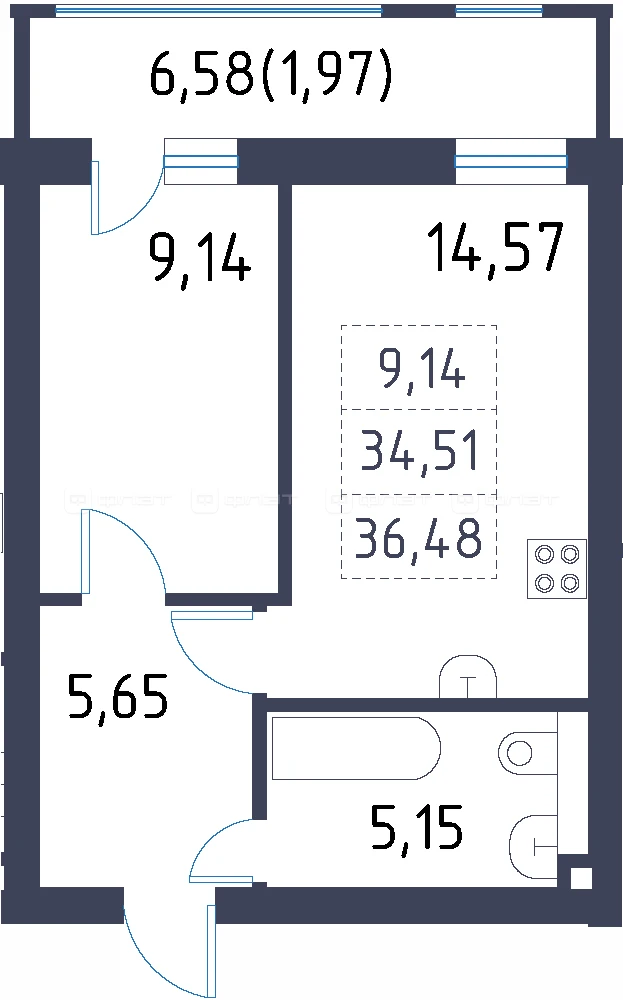 - 36.48/9.14/14.57 м²